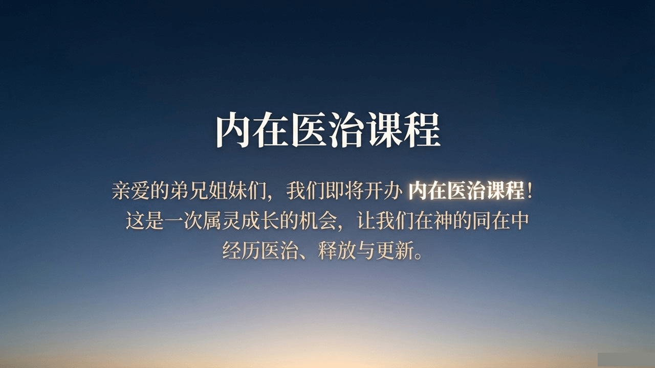 亲爱的弟兄姐妹们,我们即将开办“内在医治课程”!这是一次宝贵的属灵成长机会,邀请大家一同参与。在神的同在中,我们将学习更深经历祂的爱与医治,领受从主而来的释放、更新与恢复。本课程将围绕我们日常生活中的情绪与反应展开,帮助我们认识自己的内在反应模式,了解这些反应背后的根源,并学习如何在主的带领下面对与处理负面的情绪与习惯性反应。